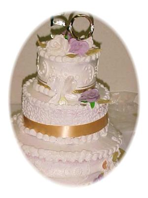 I put a few scrolls around and cornelli lace on the tier #2. I had some old ribbon that I used and clipped it with a toothpick in the back. I took it to the party in three and when I got there, put it together and put the shell border on when I was there. What a stress, now I feel so much better that I did it the first time. Thanks for all the help my friends..Nancy of Rialto