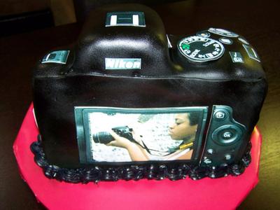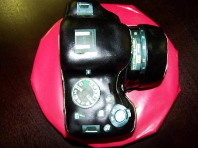 I covered the back of the camera then the middle and the last was the lent. After 2 hours of pure torture working with that fondant, I covered completely.