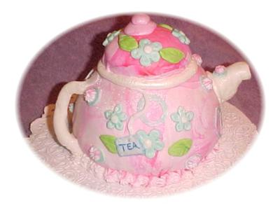 I used left over butter cream to decorate the bottom of the tea pot and made a tea bag with fondant.. Wow! hope all can understand this...Nancy